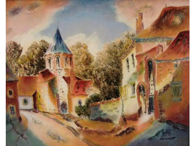 Antogny, Huile sur bois, signé en bas à droite et titré au dos – 73 x 91 cm.