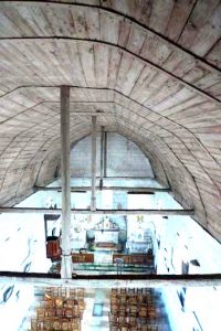 À l’intérieur, les quatre petites fenêtres romanes en plein cintre sont accompagnées de deux colonnettes engagées dont les chapiteaux sont décorés de feuillages ou d’animaux fantastiques. Par ordre,